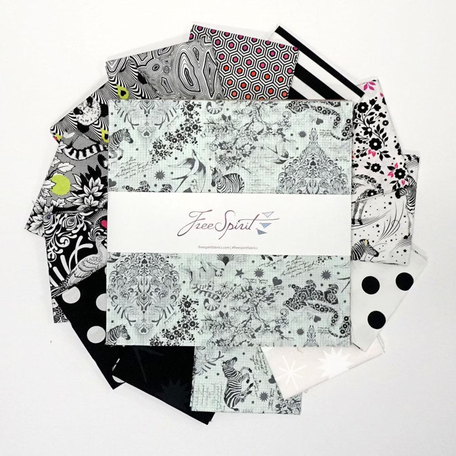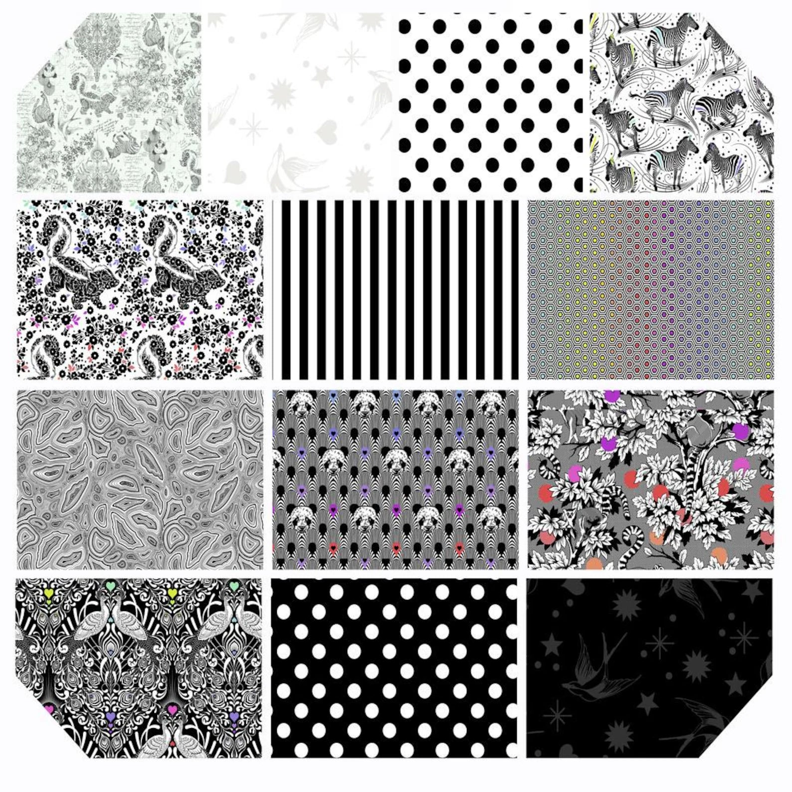 Tula Pink Linework 10" Charm Pack 42 Pieces for Free Spirit, Tula Pink FB610TP.LINEWORK Modern Black and White Fabrics with splashes of color